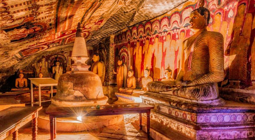 • Explore the ancient Dambulla Royal Cave Temple and the Golden Statue of Buddha en route to Polonnaruwa.